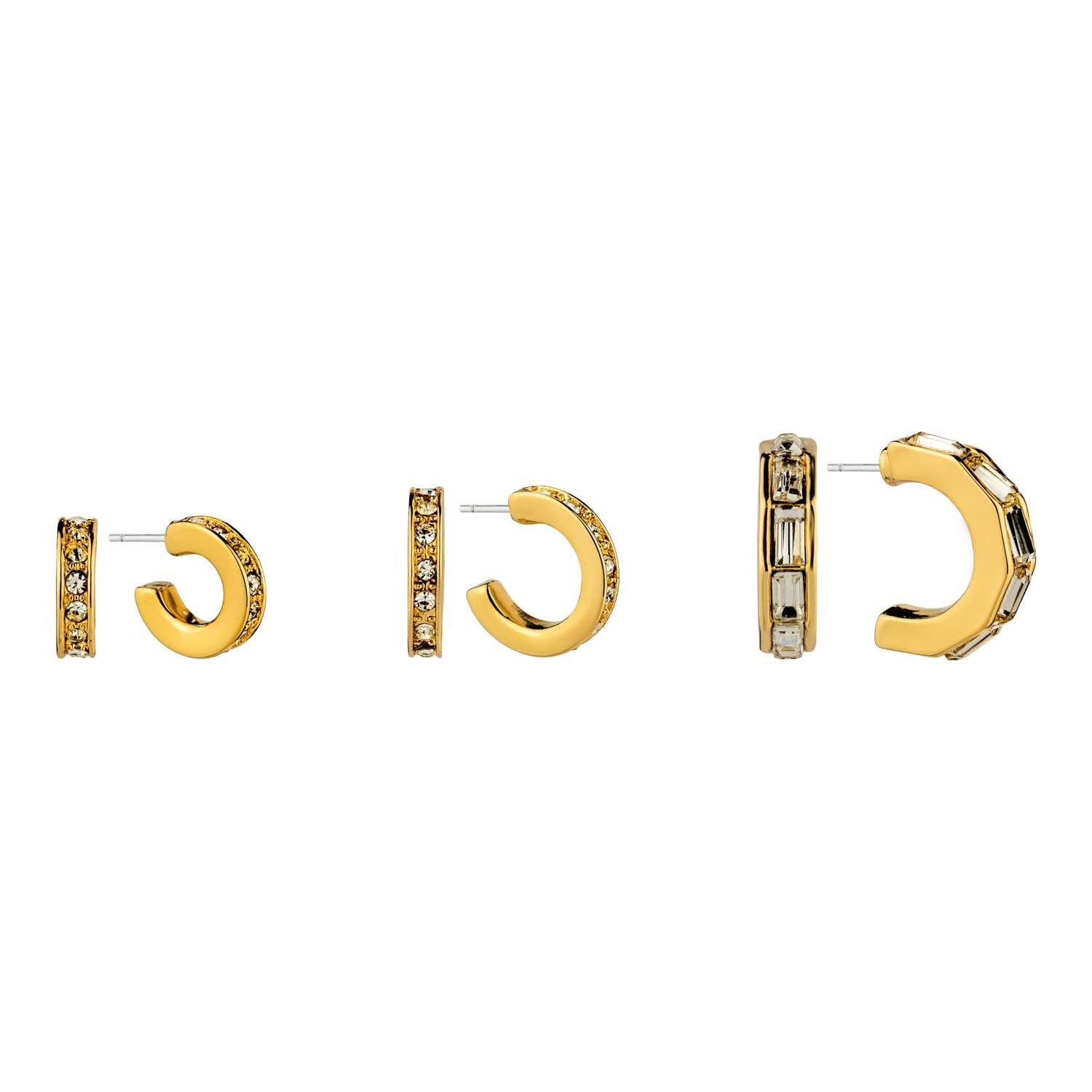 Set of 3 Huggie Clear Glass Crystal Hoops